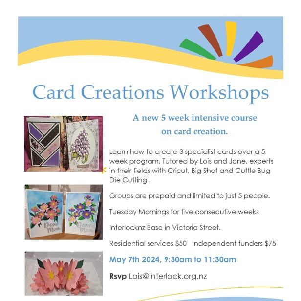 Each week your skill level will increase and the cards you create will amaze and astound your family and friends. Come along, experience something new and maybe create your own small business.
